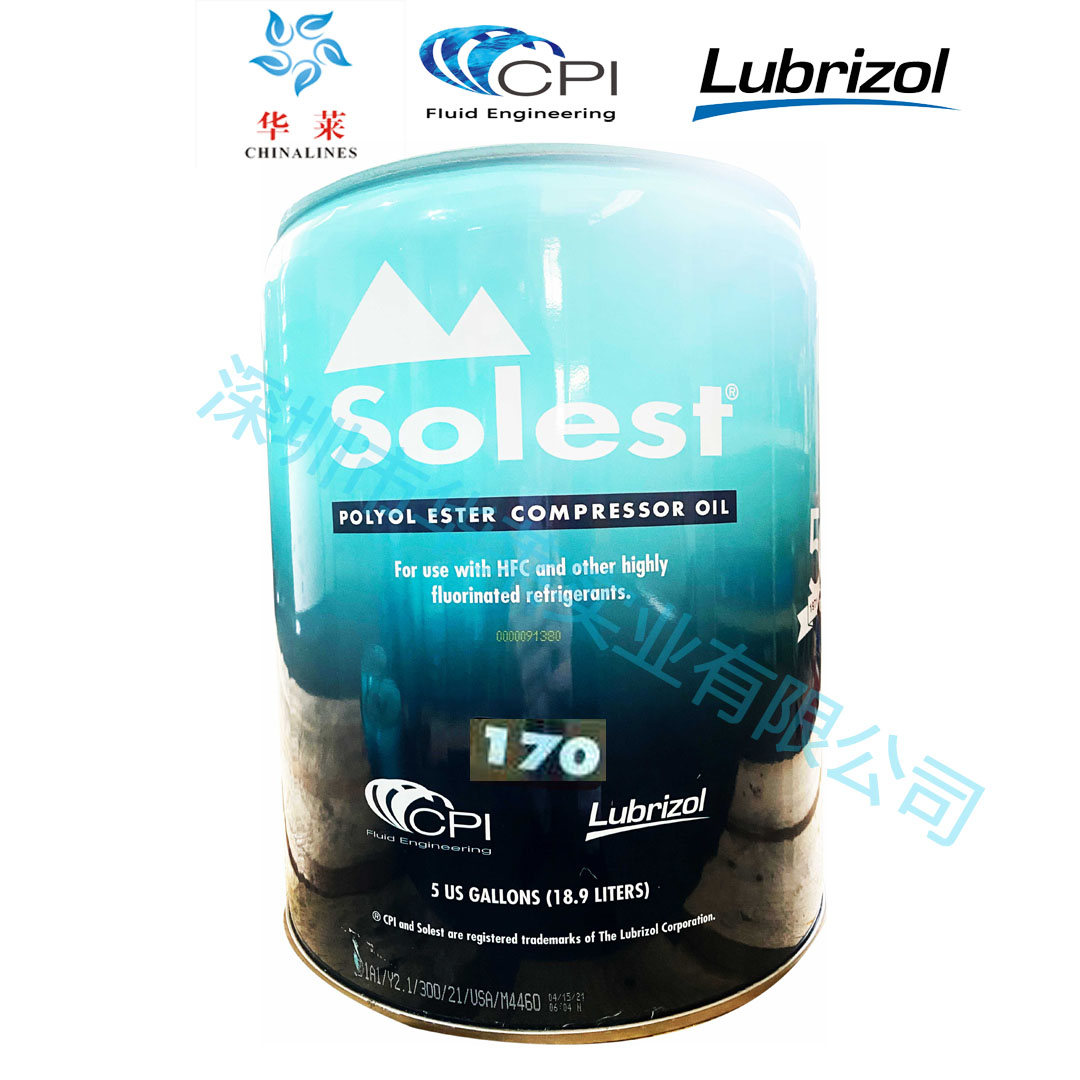 Solest 170合成冷凍油用于R-134a,R404,R407,R410,R507及 R22 冷媒系統。目前為以下公司所推薦,使用, 貼牌, 初裝,或與其POE 170油品對等之產品。如:漢鐘、比澤爾、復盛、谷輪( Copeland ), 萊富康( RefComp,世紀(Century)、羅特(Roltec ) 、CPI并提供給X主要的潤滑油公司及壓縮機制造廠做OEM貼牌供應。